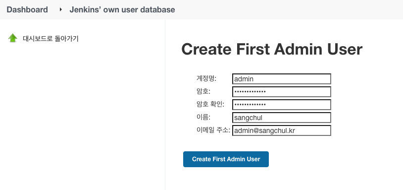 관리자 계정(admin) 만들기 및 새 관리 사용자로 로그인