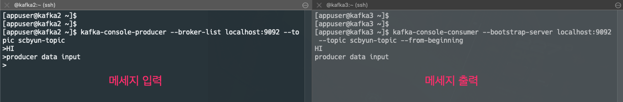 $ kafka-console-consumer --bootstrap-server localhost:9092 --topic scbyun-topic --from-beginning