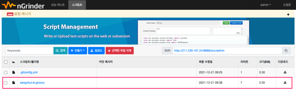 - 스크립트 : svn sangchul.kr.groovy