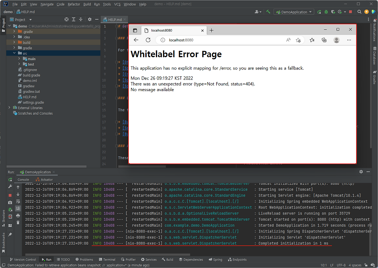 웹 브라우저 : http://localhost:8080