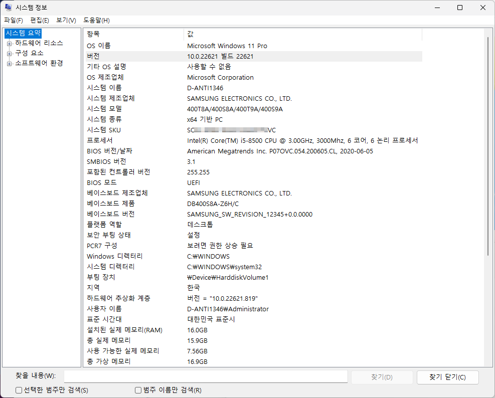 4) 검색창(돋보기) > msinfo32