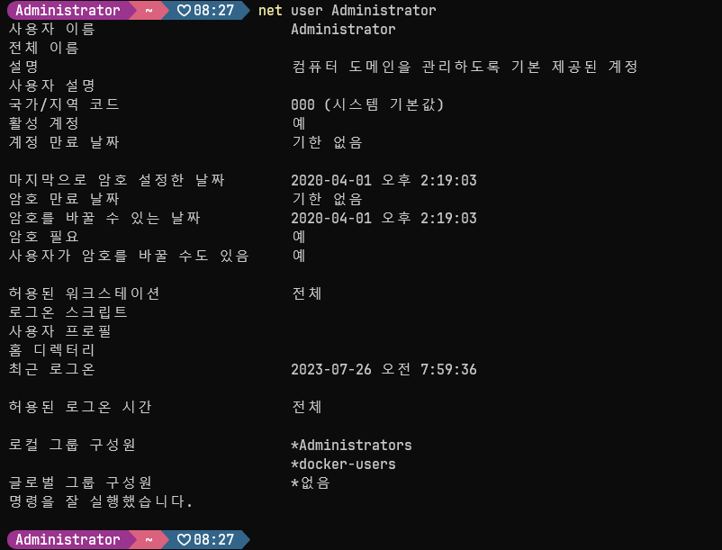 5. Administrator 패스워드를 변경한 시간을 확인합니다.