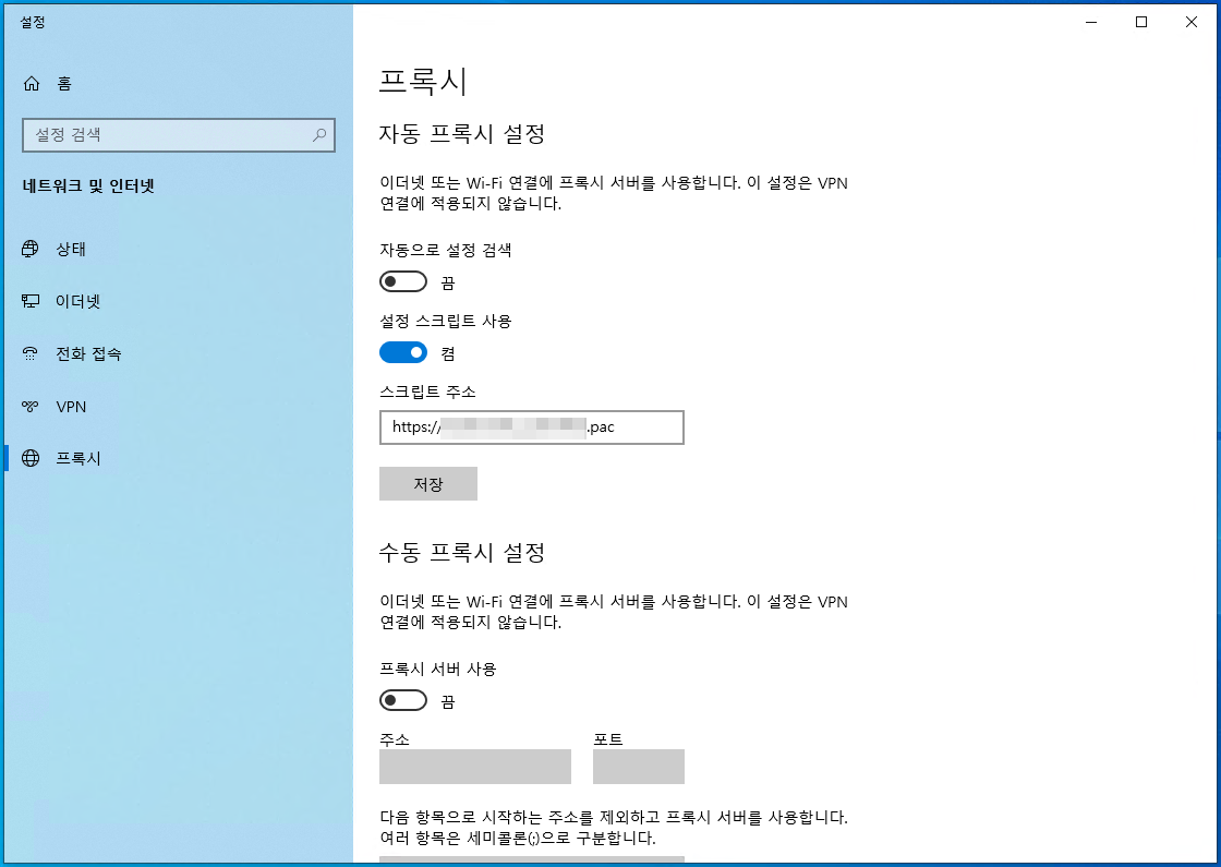 항목 위치 입력 : ms-settings:network-proxy