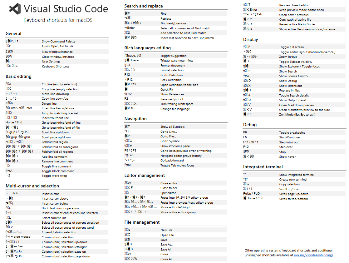 macos : https://code.visualstudio.com/shortcuts/keyboard-shortcuts-macos.pdf