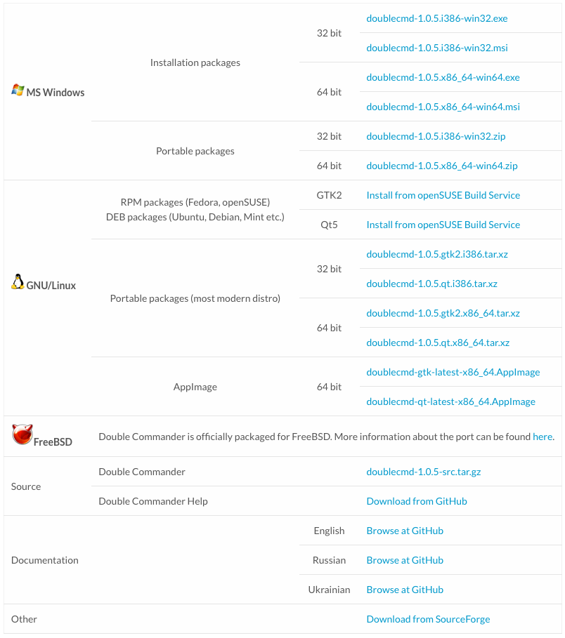 Double Commander 다운로드 페이지