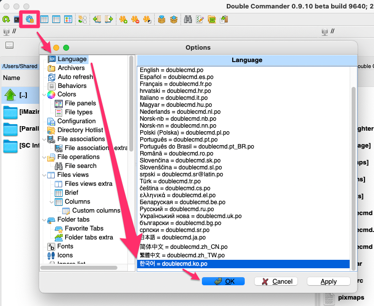 Double Commander 환경 설정(언어 변경)