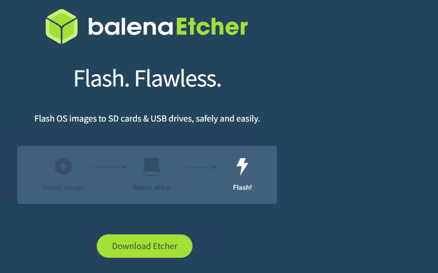 Etcher 공식 웹사이트에 접속하여 운영 체제에 맞는 버전을 다운로드합니다.