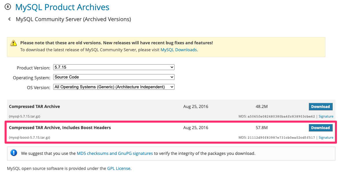 /usr/local/mysql/bin/mysqld Ver 5.7.15 for Linux on x86_64 (Source distribution)
