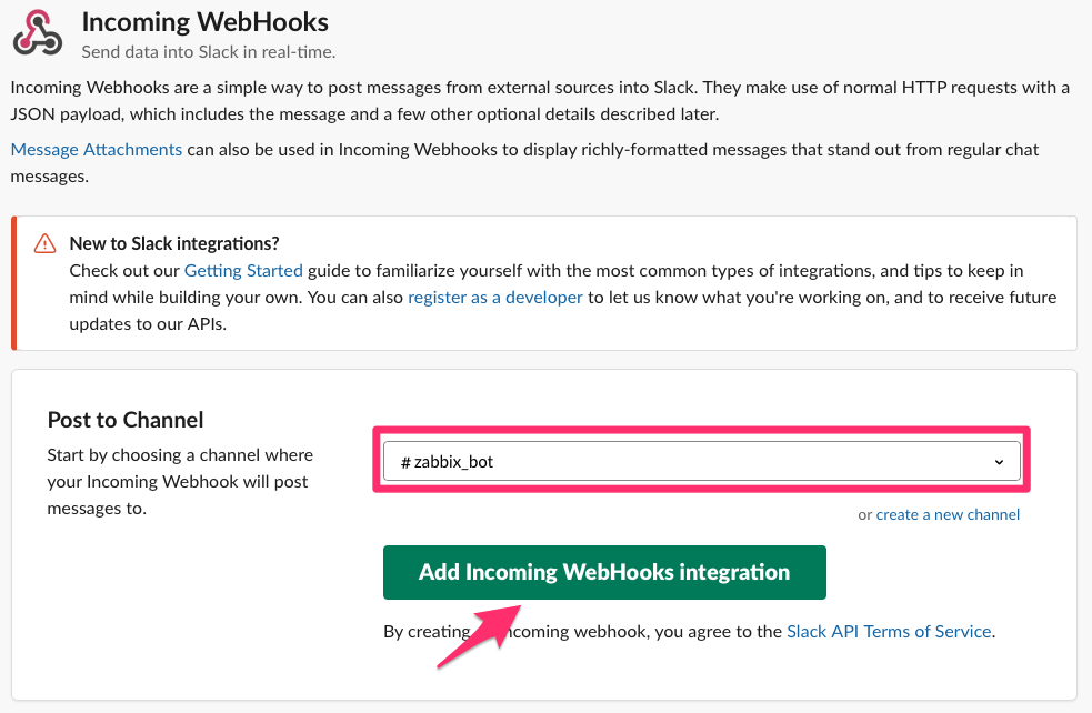 4. 채널 선택 > "Add Incoming WebHooks intergration"