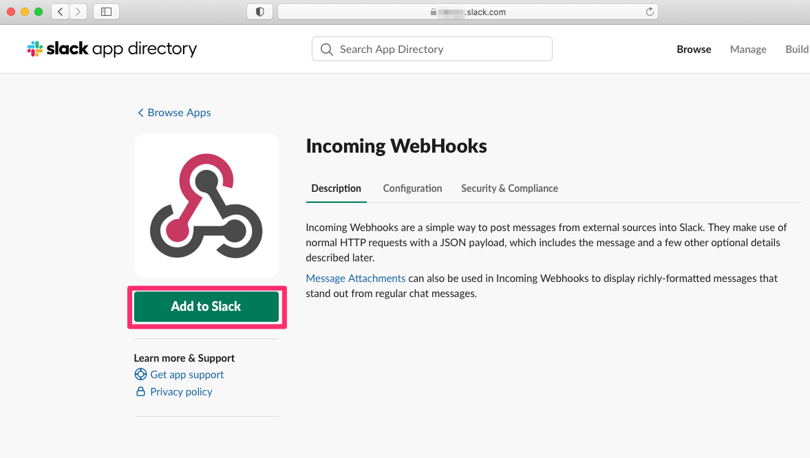 Browse Apps > Custom Integrations > Incoming WebHooks > Edit configuration