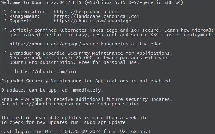 우분투 서버에 SSH 또는 콘솔로 로그인하면 시스템 정보와 함께 메시지가 출력됩니다.