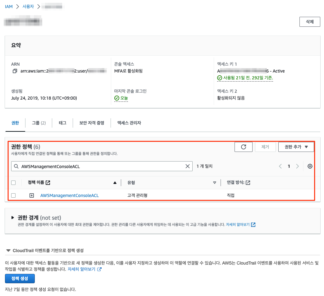 - 정책 이름 : AWSManagementConsoleACL