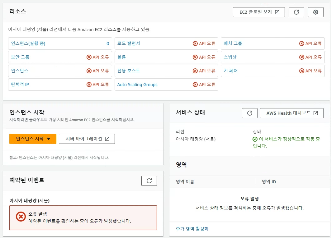 허용하지 않은 아이피에서 접근 시 아래와 같이 "API 오류"가 발생합니다.