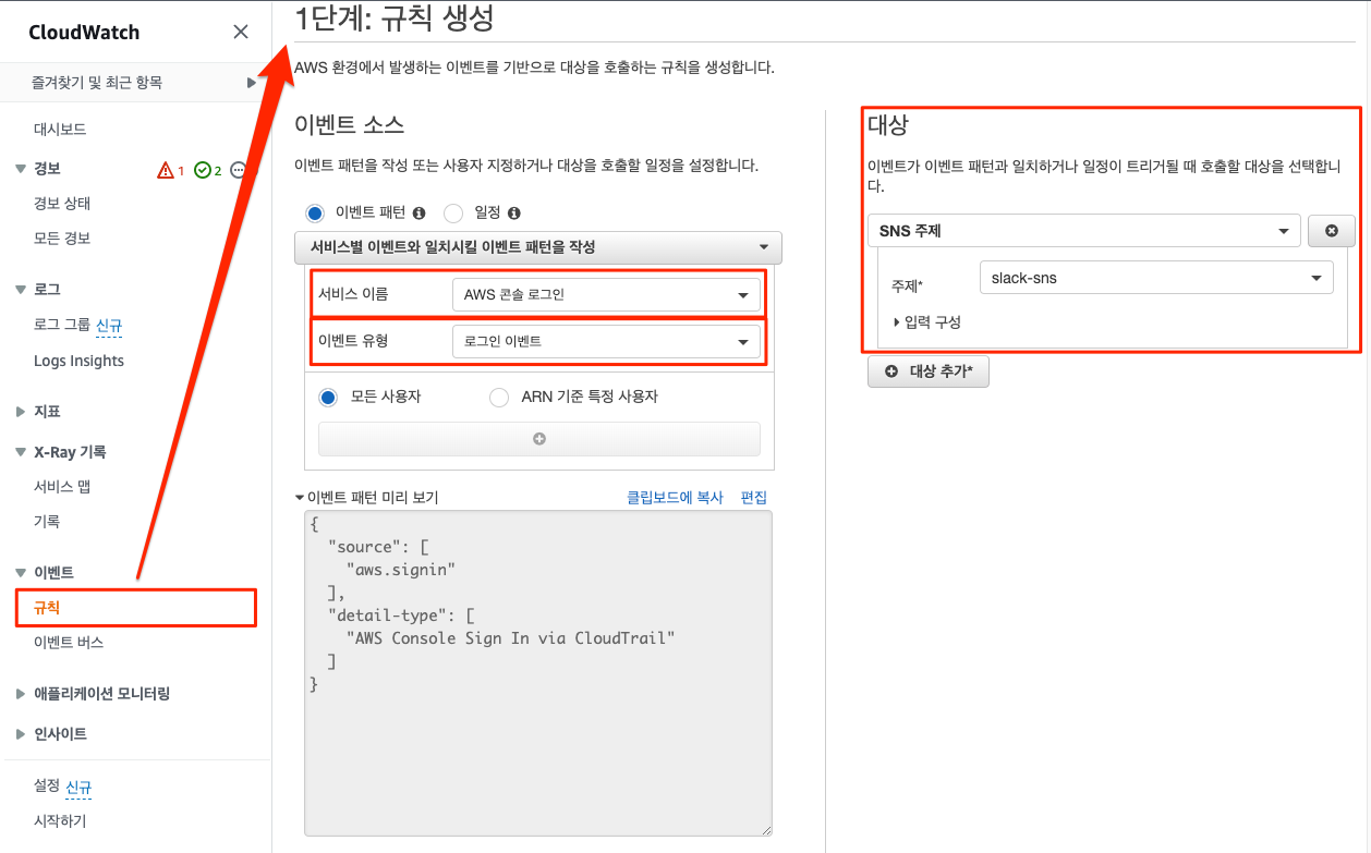 AWS Console 로그인 발생 시 Slack으로 실시간 알림을 받는 방법입니다.