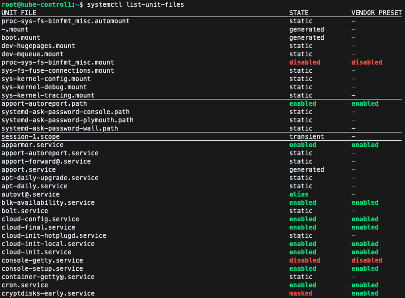 systemctl list-unit-files