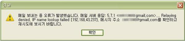 sendmail Relaying denied. IP name lookup failed 오류