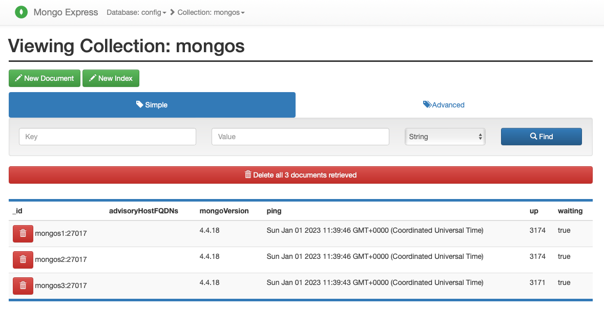 docker-compose exec mongos3 bash