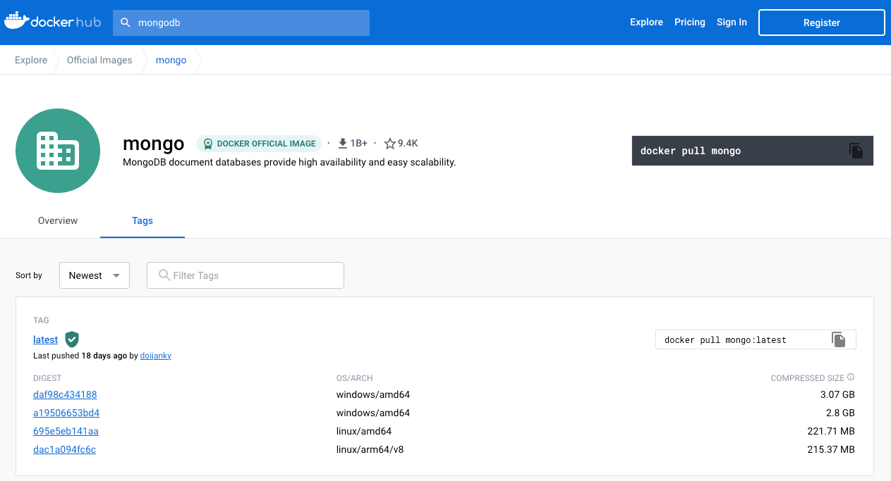 MongoDB dockerhub : https://hub.docker.com/_/mongo