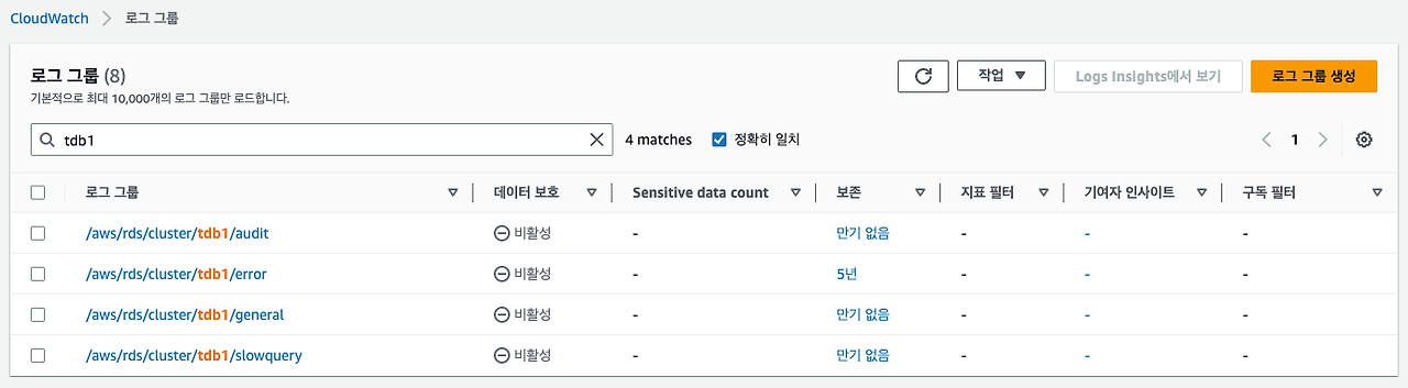 CloudWatch > 로그 > 로그 그룹
