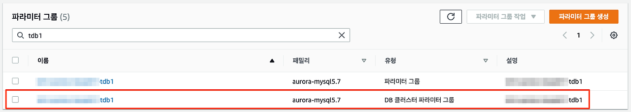 - 파라미터 그룹 이름 : (tdb1)