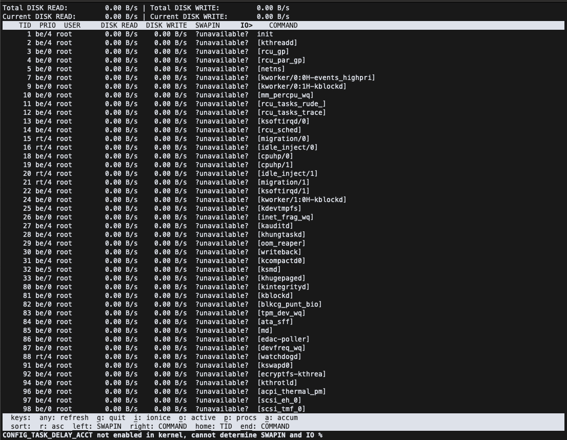 option, a to toggle the --accumulated option, i to change I/O priority, q to
