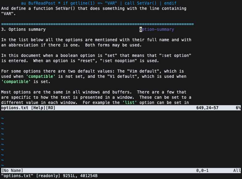 vim option summary 확인하는 방법