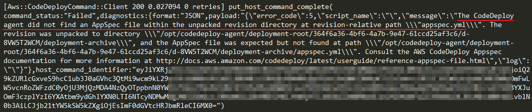 "message\":\"The CodeDeploy agent did not find an AppSpec file within the unpacked revision directory at revision-relative path \\\"appspec.yml\\\". The revision was unpacked to directory \\\"