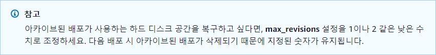max_revisions: 1 # 변경: 원하는 최대 아카이브된 배포 수