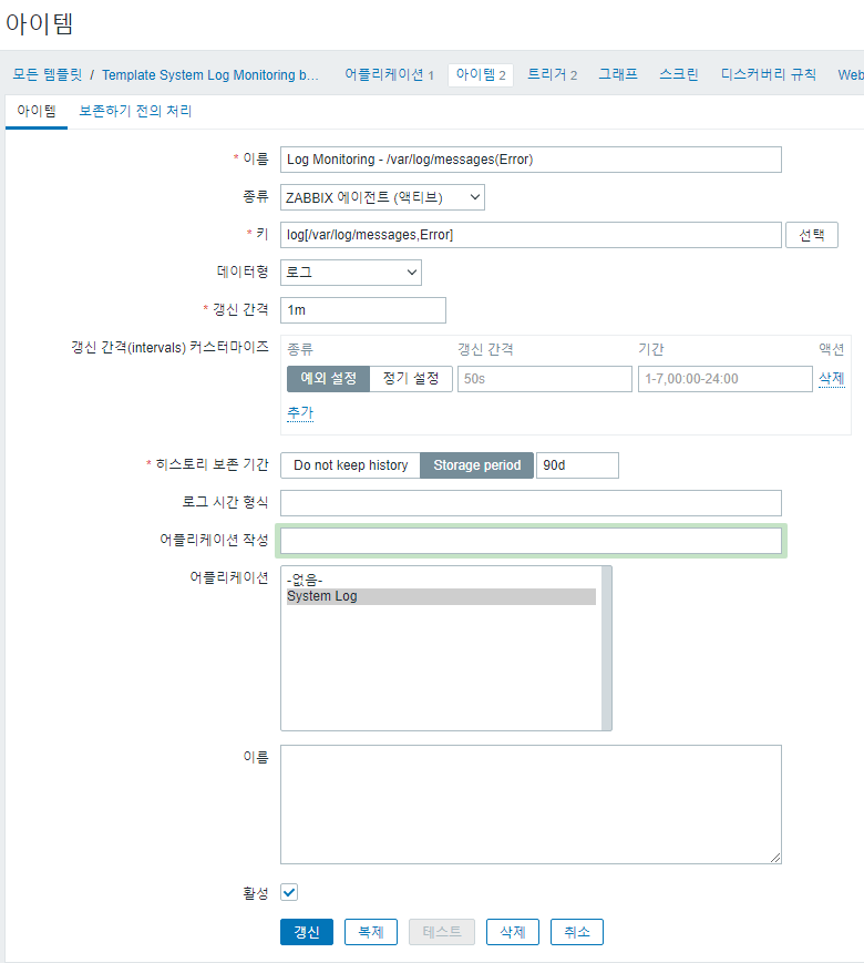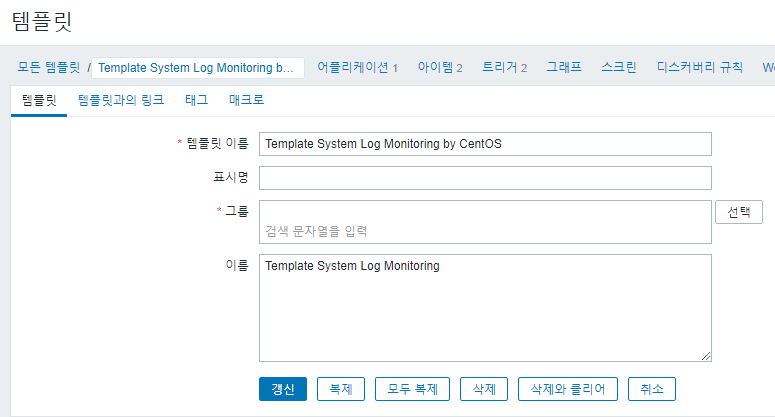 - 템플릿 이름 : Template System Log Monitoring by CentOS