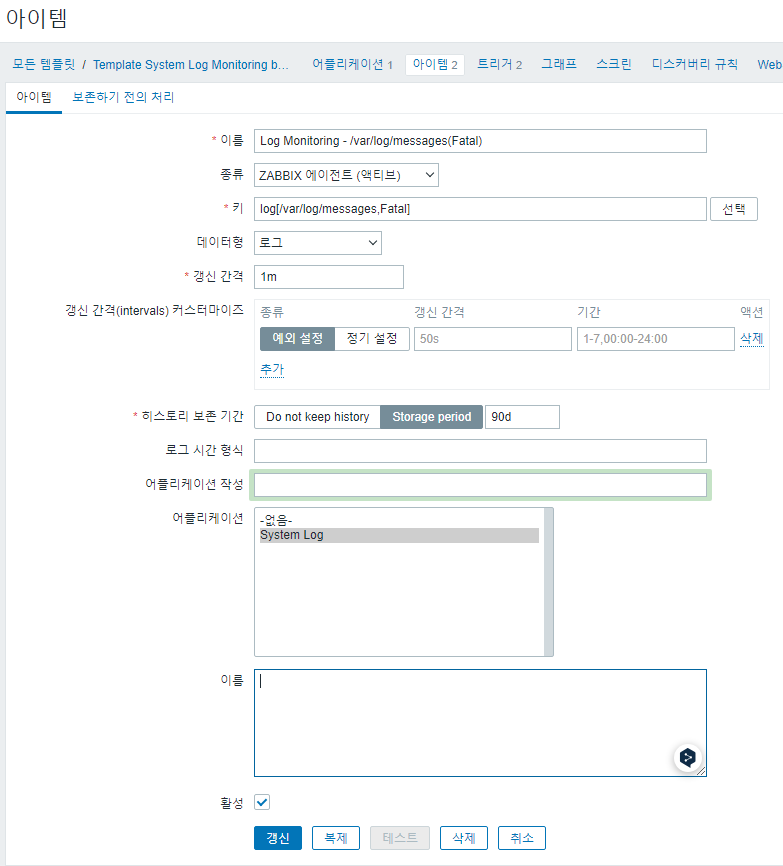 Zabbix를 사용하여 syslog(messages) 로그 파일을 모니터링하는 방법