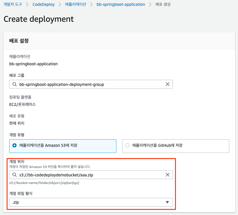 배포 그룹 이름 : bb-springboot-application-deployment-group